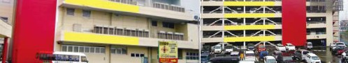 コロナワールド店舗、立体駐車場の外壁に横断幕やバナー広告緒出せます。